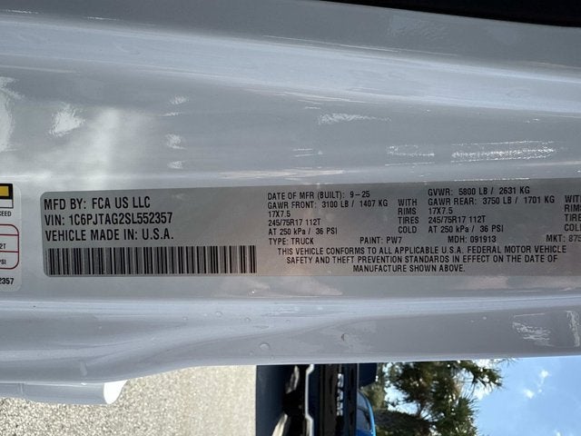 Price includes: $1000 - 2025 Southeast BC Bonus Cash. Exp. 03/02/2026 $1000 - 2025 Southeast BC Regional Bonus Cash . Exp. 03/02/2026 $2250 - 2025 National Retail Bonus Cash . Exp. 03/02/2026 Bright White Clearcoat 2025 Jeep Gladiator Sport S 4WD 8-Speed Automatic 3.6L V6 24V VVT Advanced Brake Assist, Air Conditioning, Automatic Headlamps, Deep Tint Sunscreen Windows, Enhanced Adaptive Cruise Control, Full Speed Forward Collision Warning Plus, Normal Duty Plus Suspension, ParkView Rear Back-Up Camera, Power Heated Mirrors, Power windows, Premium Wrapped Steering Wheel, Quick Order Package 24S Sport S, Radio: Uconnect 5 w/12.3 Display, Security Alarm, Sun Visors w/Illuminated Vanity Mirrors, Wheels: 17 x 7.5 Gray.
