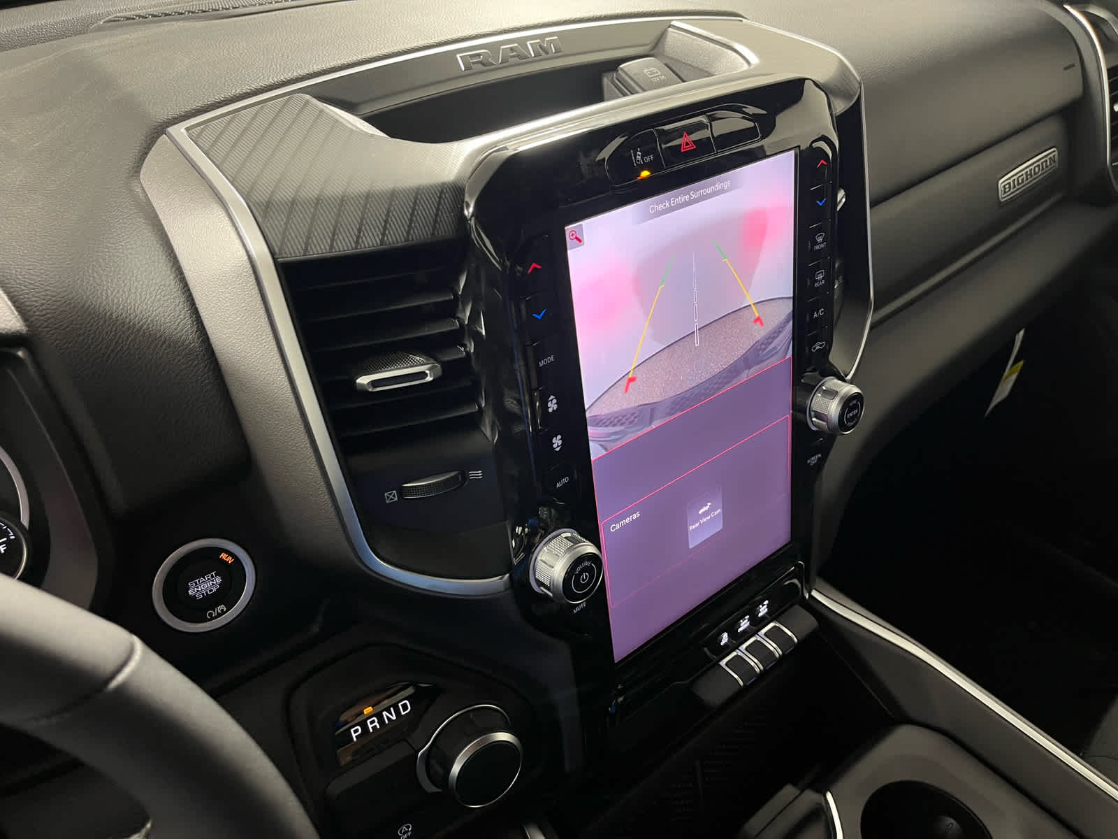 BIG HORN LEVEL 2 EQUIPMENT GROUP Power Adjustable Pedals, Leather Wrapped Steering Wheel, Integrated Voice Command w/Bluetooth®, 12 Touchscreen Display, Glove Box Lamp, Auto Power-Folding Mirrors, 115V Auxiliary Rear Power Outlet, Media Hub w/2 Charge Only USBs, Heated Front Seats, Security Alarm, Black Premium Power Mirrors, Premium Overhead Console, 9 Amplified Speakers w/Subwoofer, Remote Tailgate Release, 115V Auxiliary Power Outlet, LED Dome Lamp w/On/Off Switch, Universal Garage Door Opener, 2nd Row In Floor Storage Bins, Sun Visors w/Illuminated Vanity Mirrors, LED Footwell Lighting, Power 2-Way Driver Lumbar Adjust, Rear Window Defroster, Rear View Auto Dim Mirror, Rear Power Sliding Window, GPS Navigation, Overhead LED Lamps, Auto Dim Exterior Driver Mirror, SiriusXM w/360L, NIGHT EDITION Tires: 275/55R20 OWL All Season, Accent Color Premium Power Mirrors, Exterior Mirrors w/Supplemental Signals, Black Headlamp Bezels, Exterior Mirrors Courtesy Lamps, Grille Black Surround Black Mesh, Auto Power-Folding Mirrors, Wheels: 20 x 9.0 Aluminum Painted Clad, Auto Dim Exterior Driver Mirror, Black Exterior Truck Badging, Anti-Spin Differential Rear Axle, Accent Color Door Handles, Accent Color Tailgate Handle, Black Interior Accents, Body Color Front Bumper, Body Color Rear Bumper w/Step Pads, Black Tail Lamp Bezels, RAM Grille Badge - Black, Black Painted Exterior Mirrors Caps, Rear Wheelhouse Liners, MOPAR FRONT & REAR RUBBER FLOOR MATS, TRANSMISSION: 8-SPEED AUTOMATIC (850RE) (STD), ENGINE: 3.6L V6 24V VVT ETORQUE UPG I (STD), BLACK, DELUXE CLOTH BUCKET SEATS Bucket Seats, Full Length Floor Console, Power Adjust 8-Way Driver Seat, Power 2-Way Driver Lumbar Adjust.