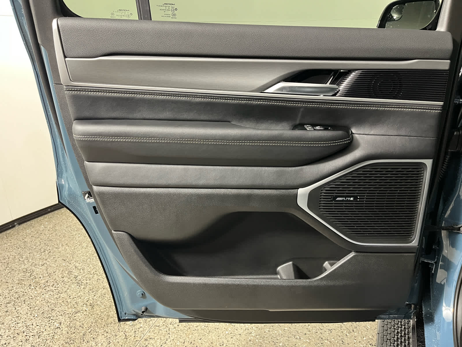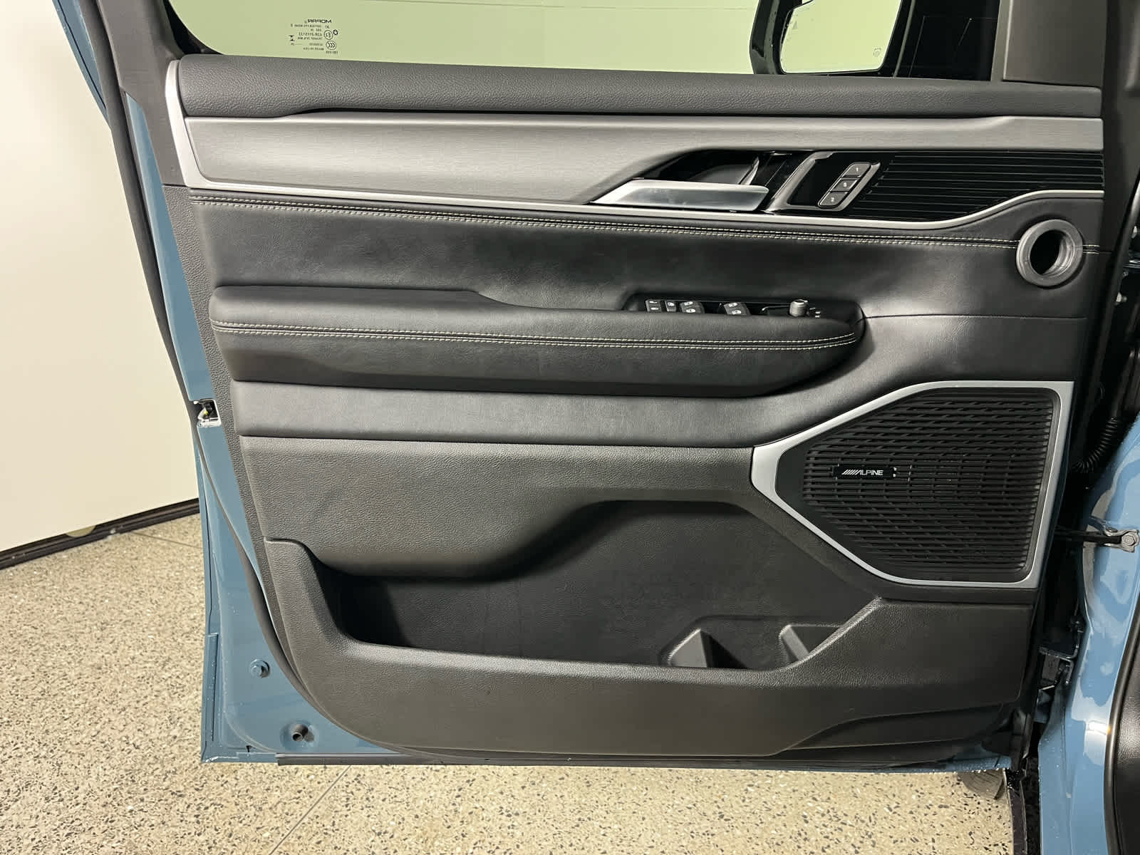 Leather Seats, Third Row Seat, Navigation, Quad Bucket Seats, Power Liftgate Jeep Grand Wagoneer with Steel Blue exterior and Global Black interior features a Straight 6 Cylinder Engine with 420 HP at 5200 RPM*.