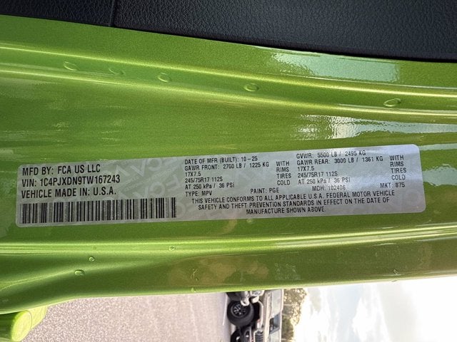 Price includes: $1500 - 2026 National Select Inventory Bonus Cash . Exp. 01/04/2027 Pge 2026 Jeep Wrangler Sport 4WD 8-Speed Automatic 2.0L I4 DOHC 4-Wheel Disc Brakes, ABS brakes, Air Conditioning, Apple CarPlay/Android Auto, Brake assist, Electronic Stability Control, ParkView Rear Back-Up Camera, Power windows, Quick Order Package 22B Sport, Radio: Uconnect 5 w/12.3 Display, Remote keyless entry, Wheels: 17 x 7.5 Black Steel Styled.