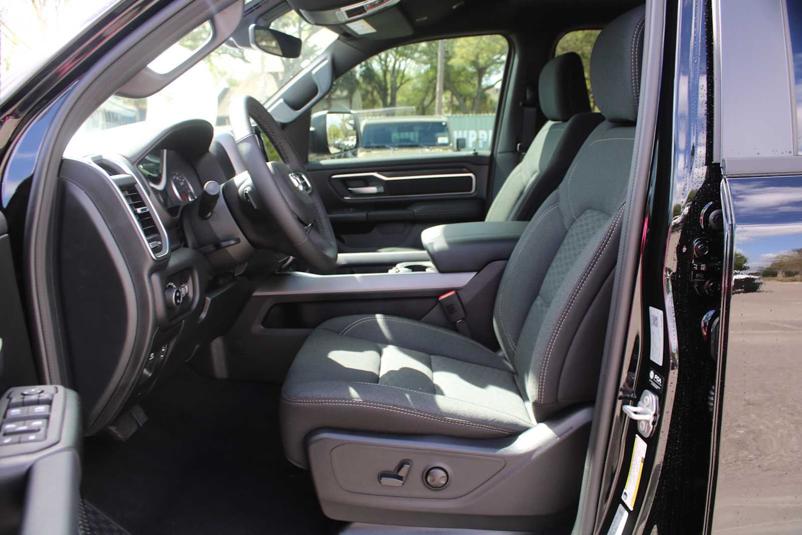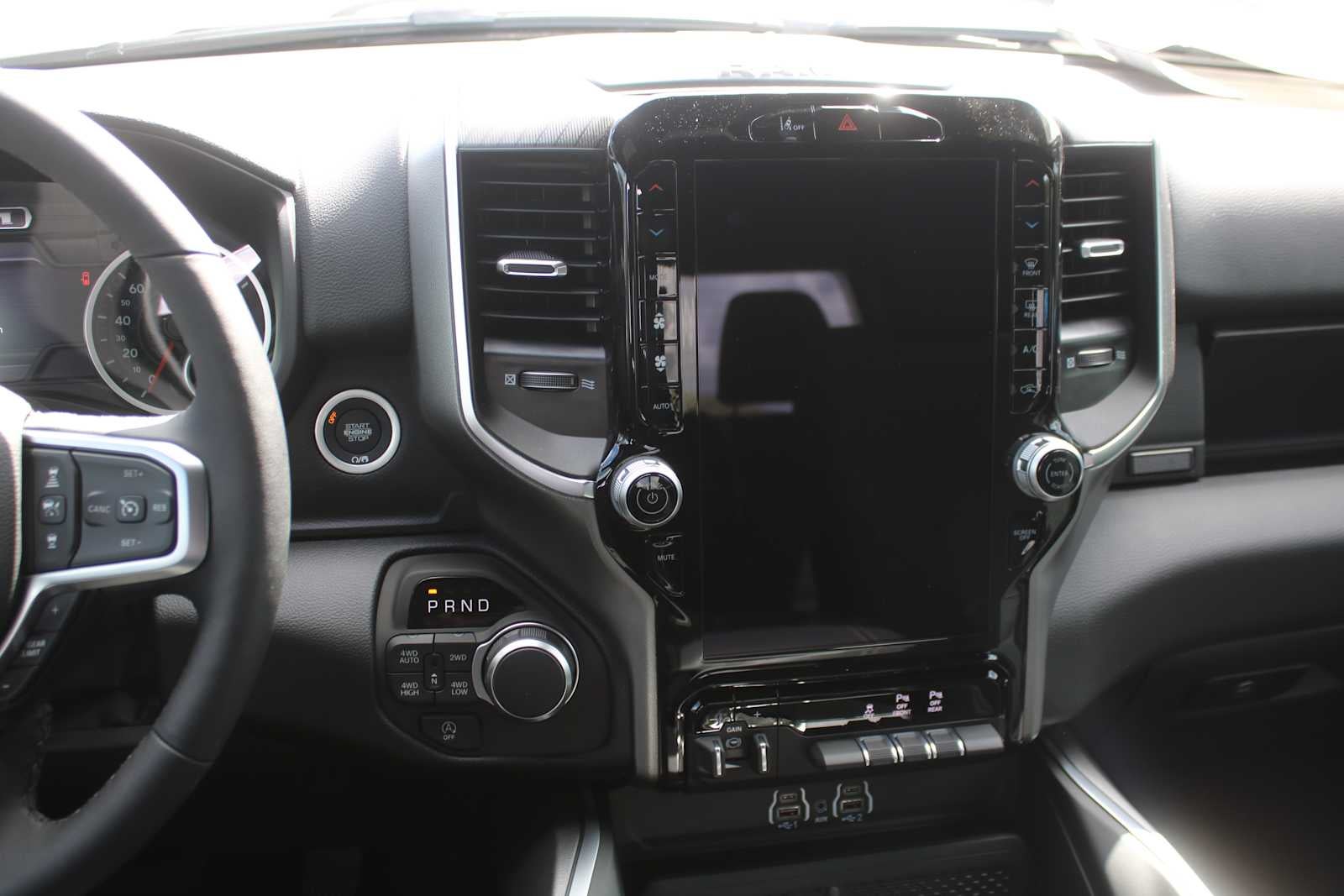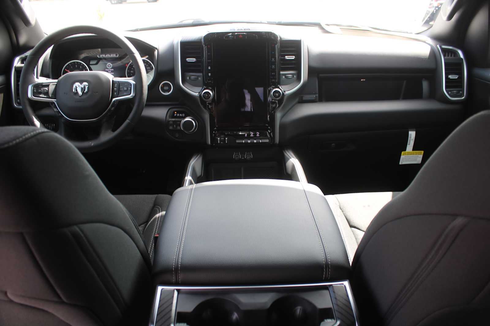 BIG HORN LEVEL 2 EQUIPMENT GROUP SiriusXM Radio Service, Power Adjustable Pedals, Leather Wrapped Steering Wheel, 12 Touchscreen Display, Glove Box Lamp, Auto Power-Folding Mirrors, 115V Auxiliary Rear Power Outlet, Media Hub w/2 Charge Only USBs, Heated Front Seats, Security Alarm, Black Premium Power Mirrors, Premium Overhead Console, 9 Amplified Speakers w/Subwoofer, Disassociated Touchscreen Display, Body Color Fender Flares, Remote Tailgate Release, 115V Auxiliary Power Outlet, LED Dome Lamp w/On/Off Switch, Universal Garage Door Opener, 2nd Row In Floor Storage Bins, Sun Visors w/Illuminated Vanity Mirrors, LED Footwell Lighting, Rear Window Defroster, Rear View Auto Dim Mirror, Rear Power Sliding Window, GPS Navigation, Overhead LED Lamps, Wheels: 20 x 9 Aluminum Chrome Clad, ENGINE: 5.7L V8 HEMI MDS VVT ETORQUE Active Noise Control System, Heavy Duty Engine Cooling, Passive Tuned Mass Damper, GVWR: 7,100 lbs, Dual Rear Exhaust w/Bright Tips, G/T Exhaust, 18 Aluminum Spare Wheel, NIGHT EDITION Tires: 275/55R20 OWL All Season, Bridgestone Brand Tires, Accent Color Premium Power Mirrors, Exterior Mirrors w/Supplemental Signals, Black Headlamp Bezels, Exterior Mirrors Courtesy Lamps, Grille Black Surround Black Mesh, Auto Power-Folding Mirrors, Wheels: 20 x 9.0 Aluminum Painted Clad, Auto Dim Exterior Driver Mirror, Black Exterior Truck Badging, Anti-Spin Differential Rear Axle, Accent Color Door Handles, Accent Color Tailgate Handle, Black Interior Accents, Dual Exhaust w/Black Tips, Body Color Front Bumper, Body Color Rear Bumper w/Step Pads, Black Tail Lamp Bezels, RAM Grille Badge - Black, Black Painted Exterior Mirrors Caps, TRANSMISSION: 8-SPEED AUTOMATIC (8HP75). Ram Big Horn with Diamond Black Crystal Pearlcoat exterior and Black interior features a 8 Cylinder Engine with 395 HP at 5600 RPM*.