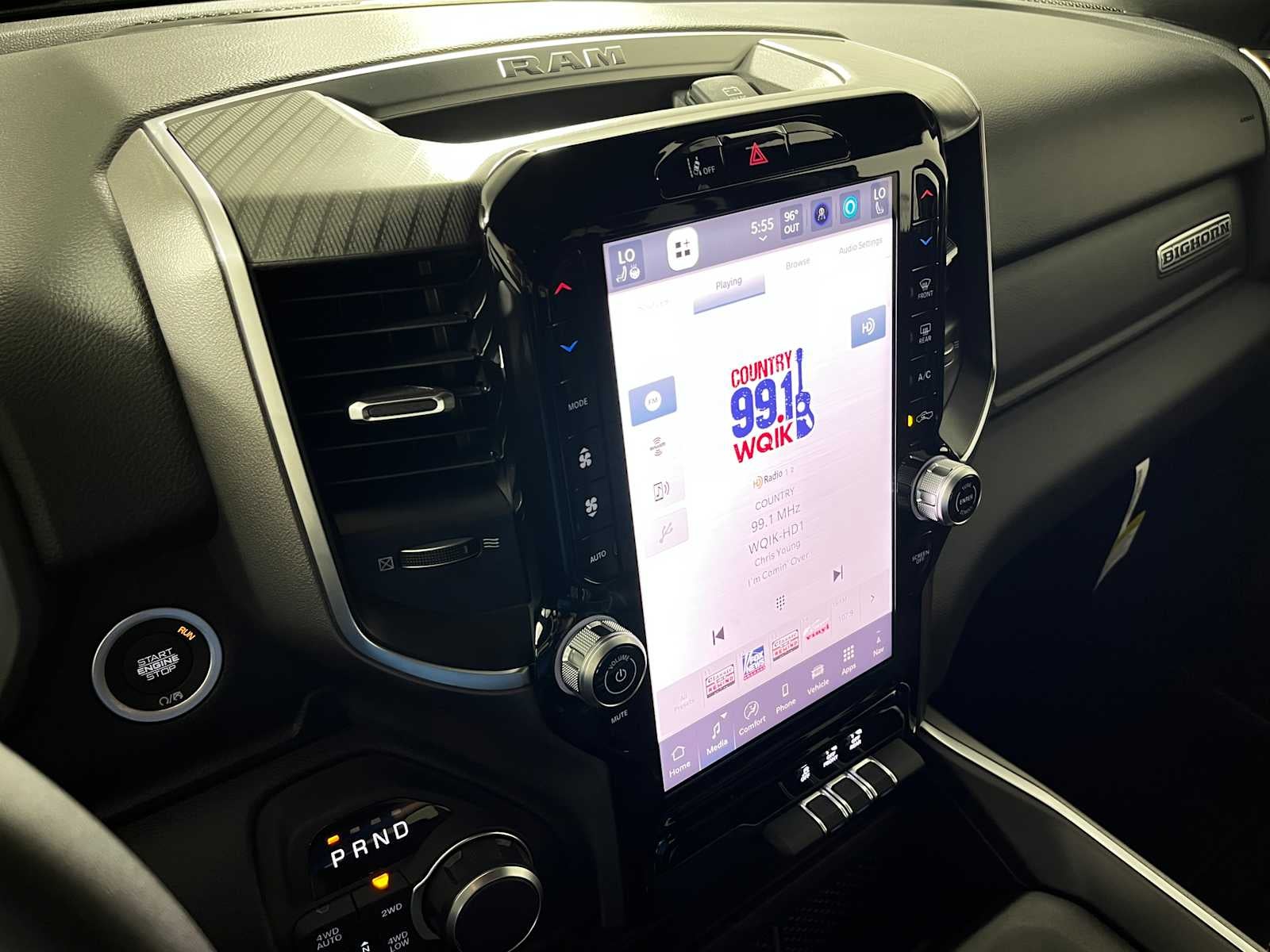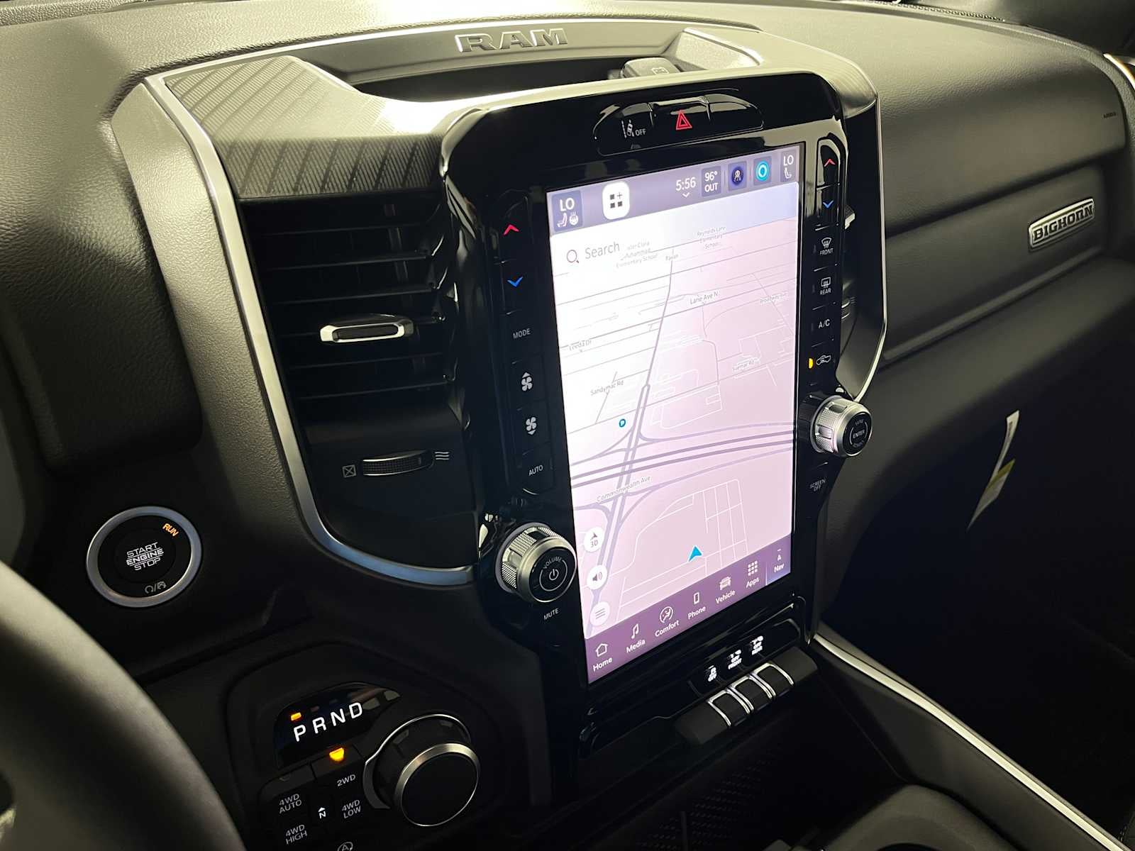 BIG HORN LEVEL 2 EQUIPMENT GROUP SiriusXM Radio Service, Power Adjustable Pedals, Leather Wrapped Steering Wheel, 12 Touchscreen Display, Glove Box Lamp, Auto Power-Folding Mirrors, 115V Auxiliary Rear Power Outlet, Media Hub w/2 Charge Only USBs, Heated Front Seats, Security Alarm, Black Premium Power Mirrors, Premium Overhead Console, 9 Amplified Speakers w/Subwoofer, Disassociated Touchscreen Display, Body Color Fender Flares, Remote Tailgate Release, 115V Auxiliary Power Outlet, LED Dome Lamp w/On/Off Switch, Universal Garage Door Opener, 2nd Row In Floor Storage Bins, Sun Visors w/Illuminated Vanity Mirrors, LED Footwell Lighting, Rear Window Defroster, Rear View Auto Dim Mirror, Rear Power Sliding Window, GPS Navigation, Overhead LED Lamps, Wheels: 20 x 9 Aluminum Chrome Clad, ENGINE: 5.7L V8 HEMI MDS VVT ETORQUE Active Noise Control System, Heavy Duty Engine Cooling, Passive Tuned Mass Damper, GVWR: 7,100 lbs, Dual Rear Exhaust w/Bright Tips, G/T Exhaust, 18 Aluminum Spare Wheel, NIGHT EDITION Tires: 275/55R20 OWL All Season, Bridgestone Brand Tires, Accent Color Premium Power Mirrors, Exterior Mirrors w/Supplemental Signals, Black Headlamp Bezels, Exterior Mirrors Courtesy Lamps, Grille Black Surround Black Mesh, Auto Power-Folding Mirrors, Wheels: 20 x 9.0 Aluminum Painted Clad, Auto Dim Exterior Driver Mirror, Black Exterior Truck Badging, Anti-Spin Differential Rear Axle, Accent Color Door Handles, Accent Color Tailgate Handle, Black Interior Accents, Dual Exhaust w/Black Tips, Body Color Front Bumper, Body Color Rear Bumper w/Step Pads, Black Tail Lamp Bezels, RAM Grille Badge - Black, Black Painted Exterior Mirrors Caps, TRANSMISSION: 8-SPEED AUTOMATIC (8HP75).