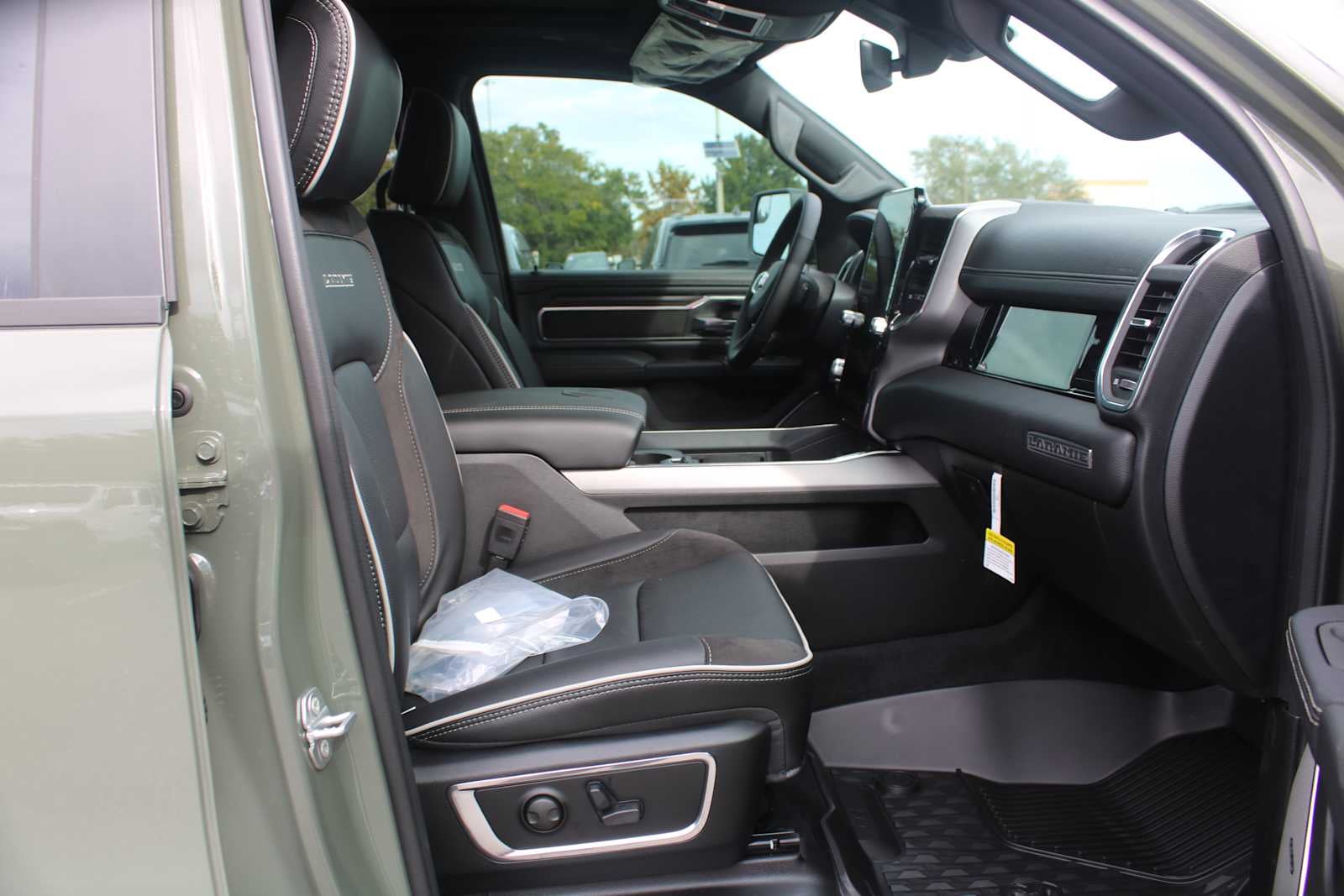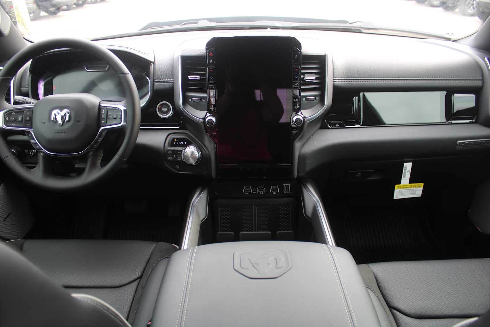 NIGHT EDITION Black Headlamp Bezels, Wheels: 22 x 9 Forged Aluminum, Tires: 285/45R22XL BSW All Season, Pirelli Brand Tires, Proximity Approach/Departure Lamps, Anti-Spin Differential Rear Axle, Accent Color Door Handles, Black Interior Accents, Body Color Front Bumper, Grille Surround 3 Black Texture 2 Black, Body Color Rear Bumper w/Step Pads, RAM Grille Badge - Black, Black Painted Exterior Mirrors Caps, Exterior Mirrors Approach Lamps, Accent Color Premium Power Mirrors, Sport Performance Hood, Black Exterior Truck Badging, Accent Color Tailgate Handle, Dual Exhaust w/Black Tips, Black Tail Lamp Bezels, LARAMIE LEVEL 2 EQUIPMENT GROUP Rain Sensitive Windshield Wipers, 14.4 Touchscreen Display, Front Passenger Interactive Display, Radio: Uconnect 5 Nav w/14.4 Display, harman/kardon® 19 Speaker Premium Sound, Cluster 12 TFT Color Display, Power Tailgate, DUAL-PANE PANORAMIC SUNROOF LED Dome/Reading Lamp, Dome Dual LED Reading Lamp, ENGINE: 5.7L V8 HEMI MDS VVT ETORQUE 48V Belt Starter Generator, Heavy Duty Engine Cooling, Passive Tuned Mass Damper, Delete Alternator, Passive Cold End Exhaust, 18 Aluminum Spare Wheel, MOPAR FRONT & REAR RUBBER FLOOR MATS, TRANSMISSION: 8-SPEED AUTOMATIC (8HP75) (STD). Ram Laramie with Canyon Lake exterior and Black interior features a 8 Cylinder Engine with 395 HP at 5600 RPM*.