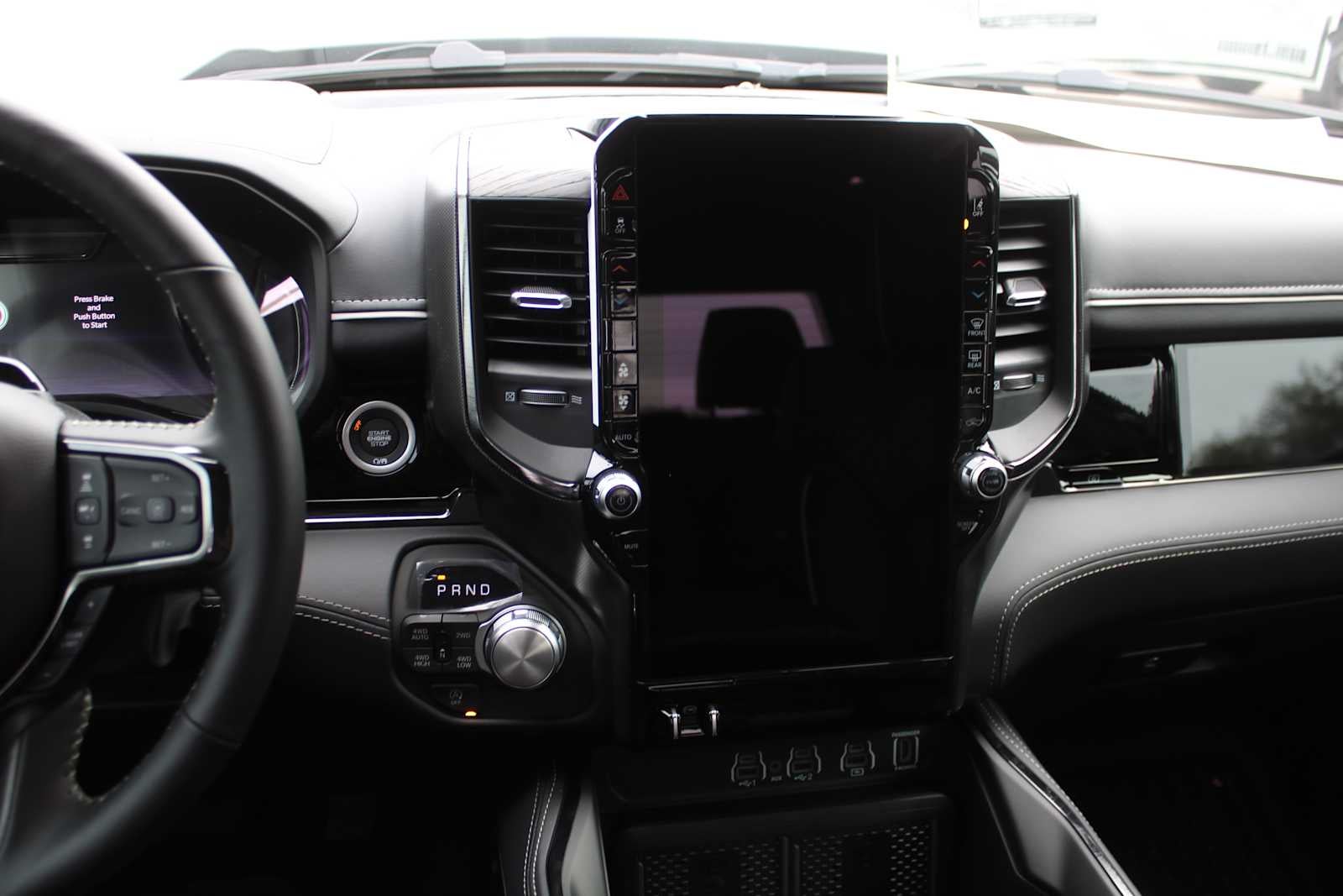 LIMITED LEVEL A EQUIPMENT GROUP Surround View Camera System, LED CHMSL Lamp, Tri-Fold Tonneau Cover, Traffic Sign Recognition, RamBox Cargo Management System, Hands-Free Active Driving Assist System, Head Up Display, Evasive Steer Assist, Drowsy Driver Detection, Exterior 115V AC Outlet, Intersection Collision Assist System, Smartphone As A Key Capable, 14.4 Touchscreen Display, Radio: Uconnect 5 Nav w/14.4 Display, 240 Amp Alternator, 12-Way/1-Way Trailer Connector, NIGHT EDITION Tires: 285/45R22XL BSW All Season, Black Headlamp Bezels, Wheels: 22 x 9 Premium Black Aluminum, Pirelli Brand Tires, Accent Color Door Handles, Body Color Front Bumper, Body Color Rear Bumper w/Step Pads, RAM Grille Badge - Black, Black Painted Exterior Mirrors Caps, Accent Color Premium Power Mirrors, Sport Performance Hood, Black Exterior Truck Badging, Black Day Light Opening Moldings, Accent Color Tailgate Handle, Dual Exhaust w/Black Tips, Black Grille Surround Texture 7 Black, Black Tail Lamp Bezels, DUAL-PANE PANORAMIC SUNROOF LED Dome/Reading Lamp, Dome Dual LED Reading Lamp, MULTI-FUNCTION TAILGATE Remote Tailgate Release, RAMs Head Badge, TRANSMISSION: 8-SPEED AUTOMATIC (8HP75) (STD), ENGINE: 3.0L I6 HURRICANE HO TWIN TURBO ESS (STD). Ram Limited with Granite Crystal Metallic Clearcoat exterior and Black interior features a Straight 6 Cylinder Engine.