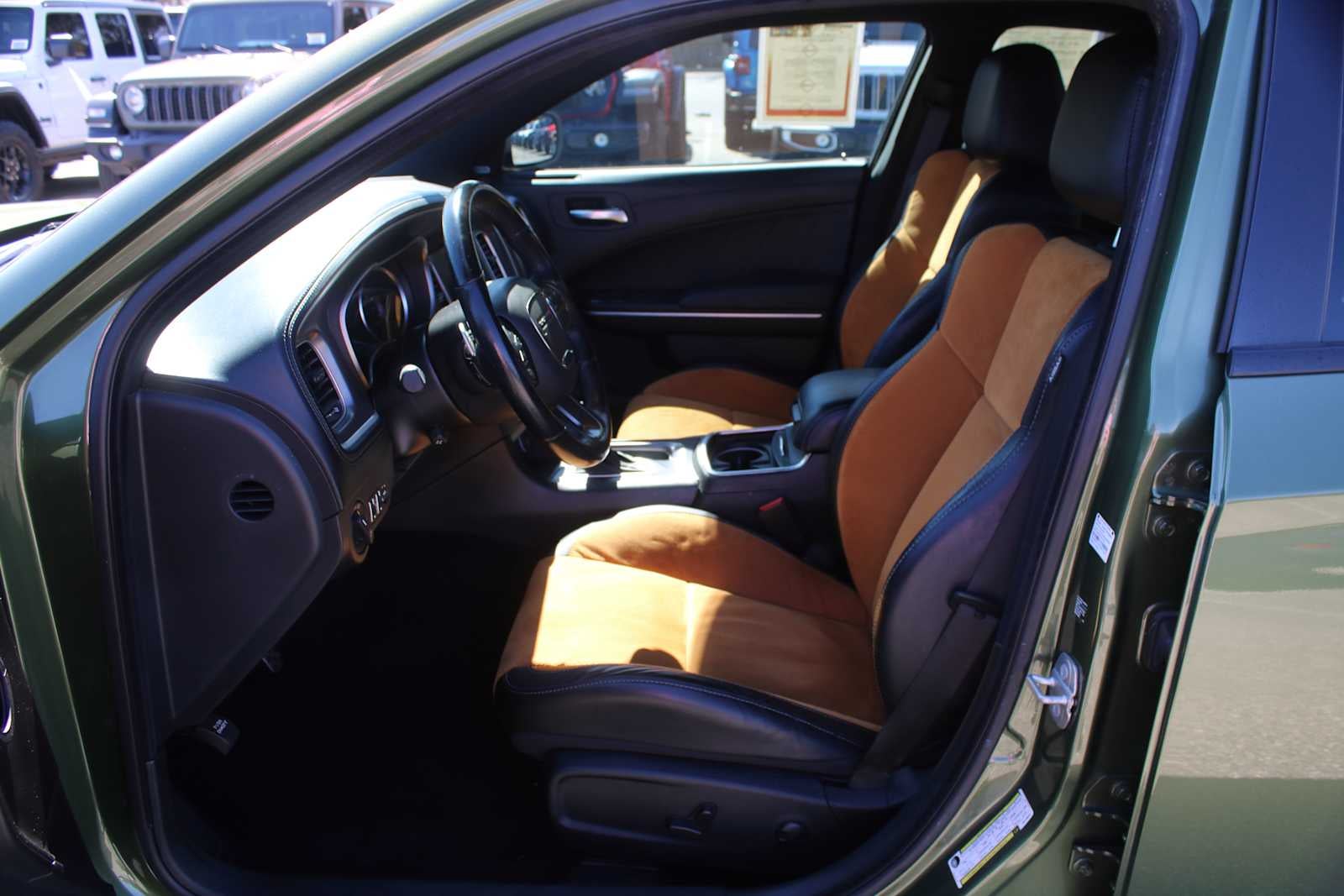 PLUS GROUP Blind Spot Memory/Power/Heat Mirror, Blind Spot & Cross Path Detection, Black-Edged Premium Floormats, Exterior Mirrors Courtesy Lamps, Bi-Function HID Projector Head Lamps, Premium-Stitched Dash Panel, Exterior Mirrors w/Heating Element, Auto Dim Exterior Driver Mirror, Driver & Passenger Lower LED Lamps, Heated Steering Wheel, Wheels: 20 x 8 Satin Carbon Aluminum, Deluxe Security Alarm, Rhombi 2-Pc Wheel Center Cap, Auto Adjust In Reverse Exterior Mirrors, Front & Rear LED Map Pockets, Front Overhead LED Lighting, TRANSMISSION: 8-SPEED AUTOMATIC (8HP50) (STD), ENGINE: 3.6L V6 24V VVT (STD). Dodge GT with F8 Green exterior and Caramel/Black interior features a V6 Cylinder Engine with 300 HP at 6350 RPM*. Serviced here, Non-Smoker vehicle, Originally bought here
