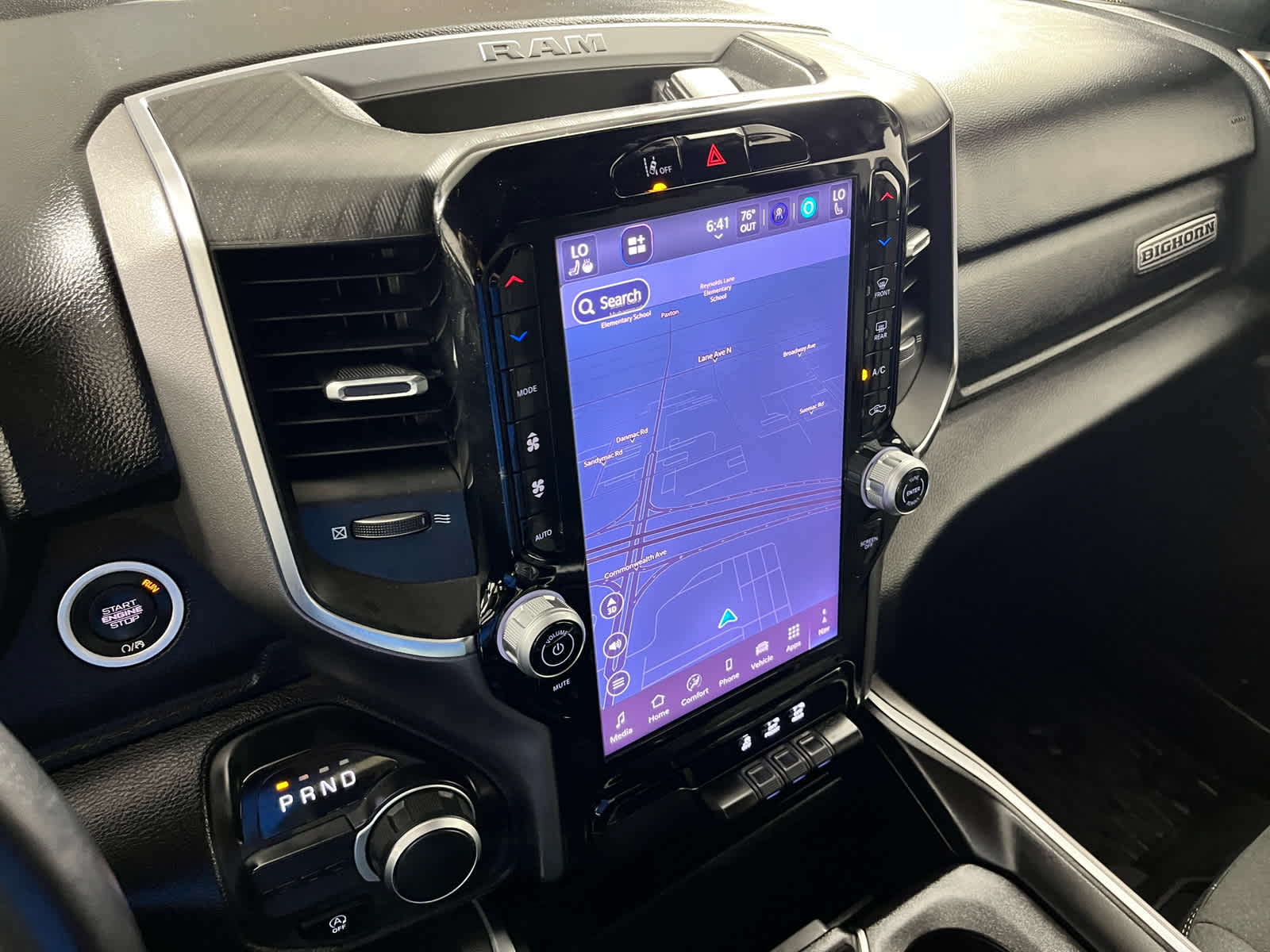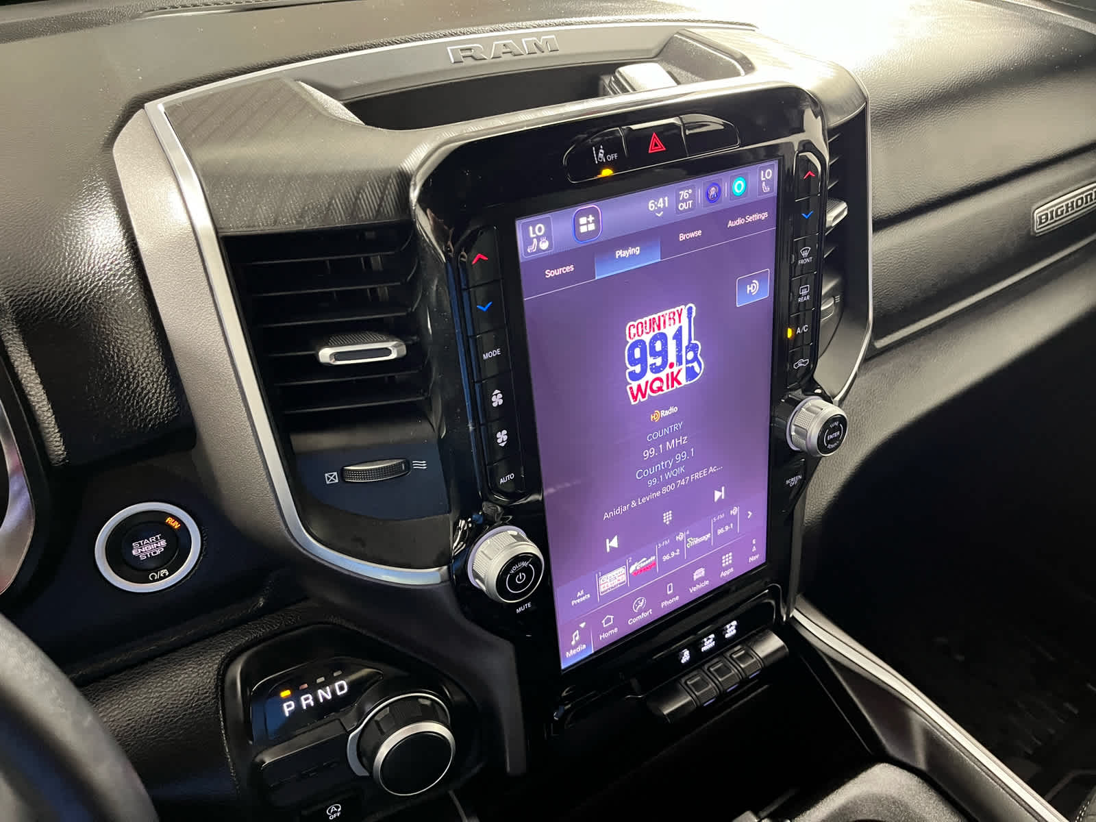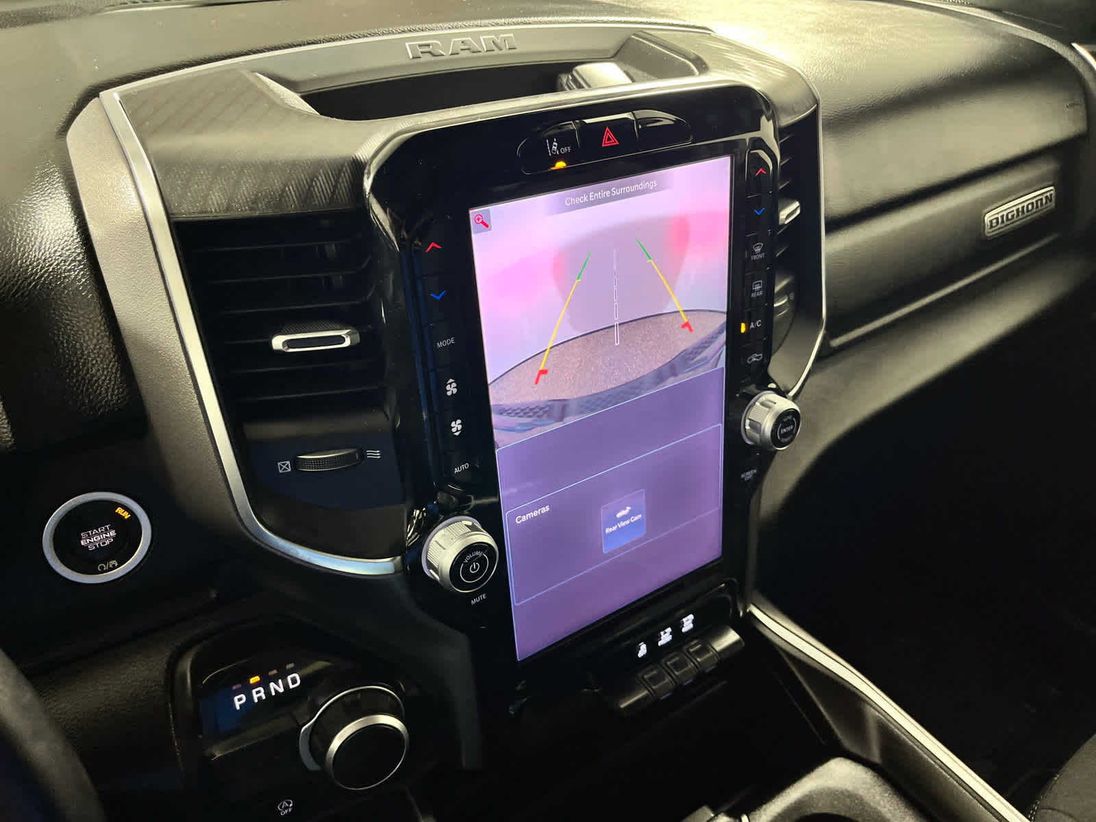 BIG HORN LEVEL 2 EQUIPMENT GROUP Power Adjustable Pedals, Leather Wrapped Steering Wheel, Integrated Voice Command w/Bluetooth®, 12 Touchscreen Display, Glove Box Lamp, Auto Power-Folding Mirrors, 115V Auxiliary Rear Power Outlet, Media Hub w/2 Charge Only USBs, Heated Front Seats, Security Alarm, Black Premium Power Mirrors, Premium Overhead Console, 9 Amplified Speakers w/Subwoofer, Remote Tailgate Release, 115V Auxiliary Power Outlet, LED Dome Lamp w/On/Off Switch, Universal Garage Door Opener, 2nd Row In Floor Storage Bins, Sun Visors w/Illuminated Vanity Mirrors, LED Footwell Lighting, Power 2-Way Driver Lumbar Adjust, Rear Window Defroster, Rear View Auto Dim Mirror, Rear Power Sliding Window, GPS Navigation, Overhead LED Lamps, Auto Dim Exterior Driver Mirror, SiriusXM w/360L, NIGHT EDITION Tires: 275/55R20 OWL All Season, Accent Color Premium Power Mirrors, Exterior Mirrors w/Supplemental Signals, Black Headlamp Bezels, Exterior Mirrors Courtesy Lamps, Grille Black Surround Black Mesh, Auto Power-Folding Mirrors, Wheels: 20 x 9.0 Aluminum Painted Clad, Auto Dim Exterior Driver Mirror, Black Exterior Truck Badging, Anti-Spin Differential Rear Axle, Accent Color Door Handles, Accent Color Tailgate Handle, Black Interior Accents, Body Color Front Bumper, Body Color Rear Bumper w/Step Pads, Black Tail Lamp Bezels, RAM Grille Badge - Black, Black Painted Exterior Mirrors Caps, Rear Wheelhouse Liners, MOPAR FRONT & REAR RUBBER FLOOR MATS, TRANSMISSION: 8-SPEED AUTOMATIC (850RE) (STD), ENGINE: 3.6L V6 24V VVT ETORQUE UPG I (STD), BLACK, DELUXE CLOTH BUCKET SEATS Bucket Seats, Full Length Floor Console, Power Adjust 8-Way Driver Seat, Power 2-Way Driver Lumbar Adjust.