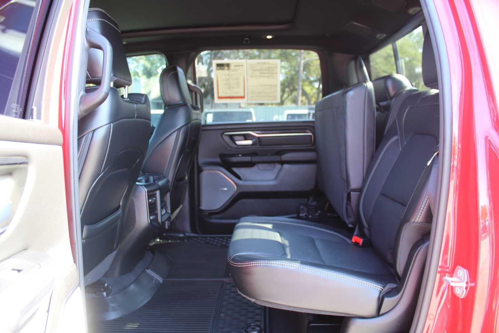 REBEL LEVEL 2 EQUIPMENT GROUP Rear Window Defroster, Rain Sensitive Windshield Wipers, Power Adjustable Pedals w/Memory, Front Passenger Interactive Display, Auto Power-Folding Mirrors, 115V Auxiliary Rear Power Outlet, Media Hub w/2 Charge Only USBs, Proximity Approach/Departure Lamps, Auto Dim Exterior Driver Mirror, Accent Color Door Handles, Heated Second Row Seats, Power Adjust 8-Way Front Passenger Seat, Security Alarm, Black Painted Exterior Mirrors Caps, Off-Road Information Pages, Exterior Mirrors Approach Lamps, HD Radio, Smartphone As A Key Capable, Accent Color Premium Power Mirrors, Dual Wireless Charging Pad, Exterior Mirrors w/Supplemental Signals, Exterior Mirrors Courtesy Lamps, Radio: Uconnect 5 Nav w/14.4 Display, harman/kardon® 19 Speaker Premium Sound, 2-Door Passive, 4-CORNER AIR SUSPENSION, DUAL-PANE PANORAMIC SUNROOF Dome Dual LED Reading Lamp, BLACK, LUX LEATHER TRIMMED BUCKET SEATS Power 2-Way Passenger Lumbar Adjust, Ventilated Front Seats, Heated Front Seats, Heated Steering Wheel, Power Adjust 8-Way Front Passenger Seat, Power 2-Way Driver Lumbar Adjust, TECHNOLOGY GROUP Head Up Display, LED CHMSL Lamp, 12-Way/1-Way Trailer Connector, MOPAR BLACK TUBULAR SIDE STEPS, TRANSMISSION: 8-SPEED AUTOMATIC (8HP75) (STD), ENGINE: 3.0L I6 HURRICANE SO TWIN TURBO ESS (STD). Ram Rebel with Flame Red Clearcoat exterior and Black interior features a Straight 6 Cylinder Engine with 420 HP at 5200 RPM*. Serviced here, Non-Smoker vehicle